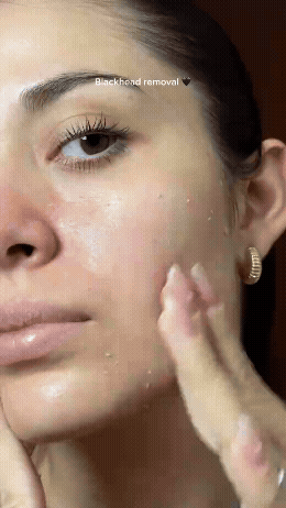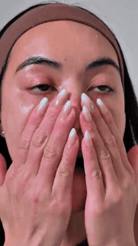 - STEP 3: Gently press and pat into the, nose, chin, and any areas with visible pores never rub or drag